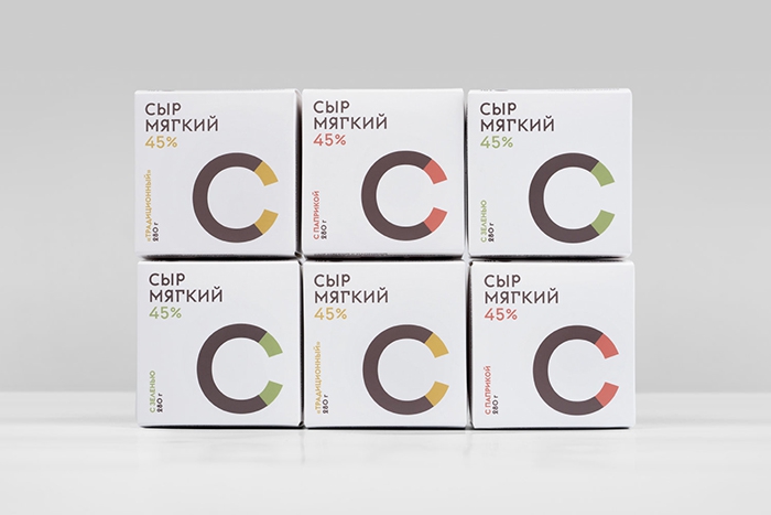 切布拉什基尼兄弟的家庭农场对俄罗斯市场来说是一个具有挑战性的项目。切布拉什基尼兄弟是真正的人,他们在生态清洁的莫斯科地区修复了四个旧农场,运输了高产的欧洲奶牛品种,并建立了一个超现代化的乳品厂。俄罗斯市场上乳制品品牌的包装通常是基于传统的视觉编码,如倒牛奶、奶牛的图像等。设计师古代斯拉夫符号中找到了灵感,这些符号意味着种子、草、土和其他农业符号。考虑到这一经验,设计了一个符号系统,用以说明农业和乳制品生产的整个过程。这种图形作为包装设计的一个附加元素出现,反映了一个农业主题。图形和排版是建立在同一个系统上的。就像植物从种子长到花朵一样,图形和字母也会随着脂肪含量的增加而变化。此外,每种产品都有两种不同的颜色,一种是字母的原色,另一种是图形的辅助色。