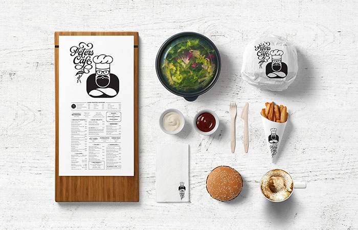 各种甜品和丰盛的烘焙产品,辅以菜单,包括可提供全面健康午餐的菜肴,以及丰富的香浓咖啡。创建品牌时,我们会用毛笔进行手工刻字以及产品上Peters的个性化设置,以便更好地实现我们的目标,创造出真正的形象包装设计,有些古怪和流氓,并且在老式环境中具有出色的触感。徽标是一个可爱且友善的大胡子家伙,有助于进一步加强这种平易近人的观念。该设计吸引了现代咖啡馆文化和精美的用餐体验。